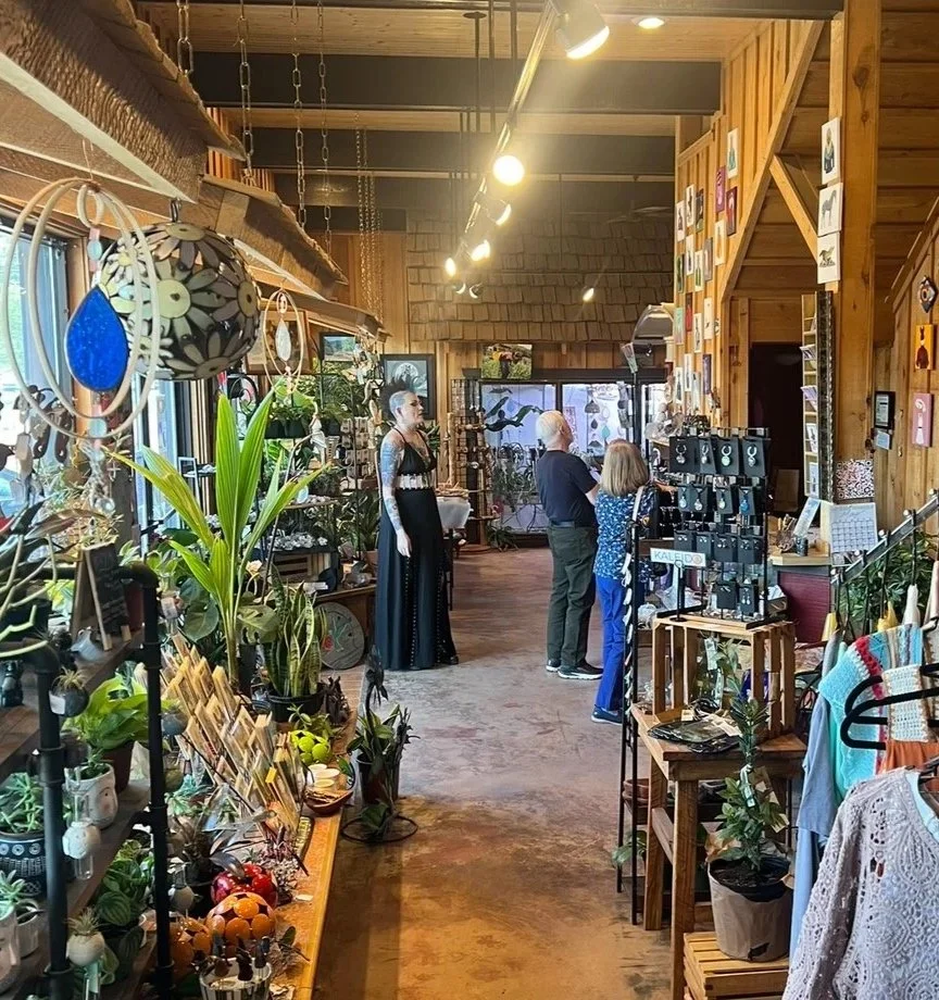 We sell art made in-house, as well as work from over 58 local artists and makers, along with imports from around the world. You’ll also find cactus, succulents, and other houseplants growing in our greenhouse.